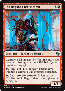 | Rules | When Aethertorch Renegade enters the battlefield, you get (four energy counters). , Pay : Aethertorch Renegade deals 1 damage to target creature. , Pay : Aethertorch Renegade deals 6 damage to target player or planeswalker. |
