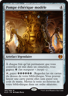 | Rules | Whenever a permanent you control is put into a graveyard, you get (an energy counter). , Pay : Look at the top six cards of your library. You may cast a spell from among them without paying its mana cost. Put the rest on the bottom of your library in a random order. |