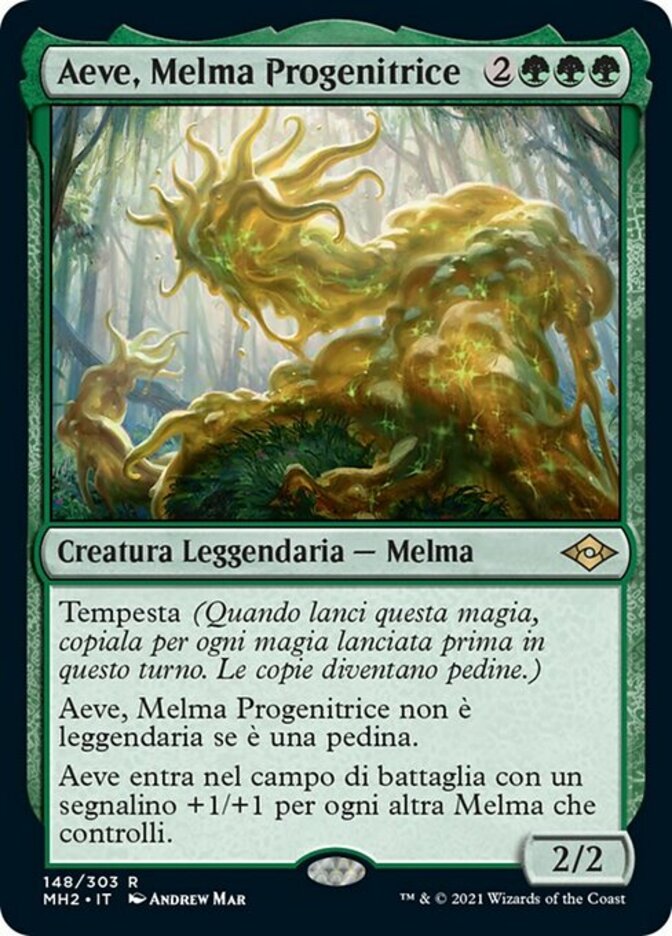 | Rules | Storm (When you cast this spell, copy it for each spell cast before it this turn. Copies become tokens.) Aeve, Progenitor Ooze isn't legendary if it's a token. Aeve enters the battlefield with a +1/+1 counter on it for each other Ooze you control. |