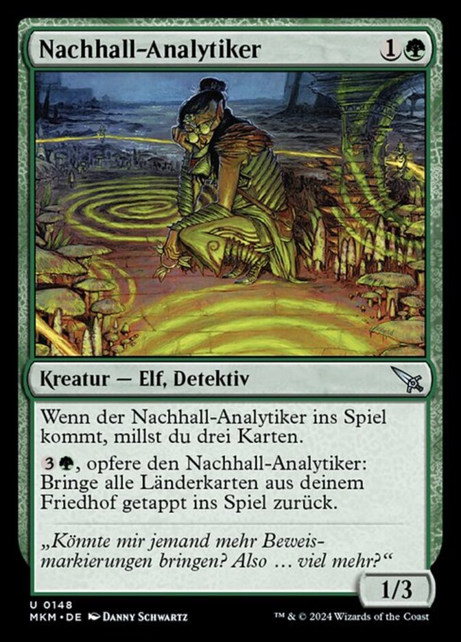 | Rules | When Aftermath Analyst enters the battlefield, mill three cards. , Sacrifice Aftermath Analyst: Return all land cards from your graveyard to the battlefield tapped. |