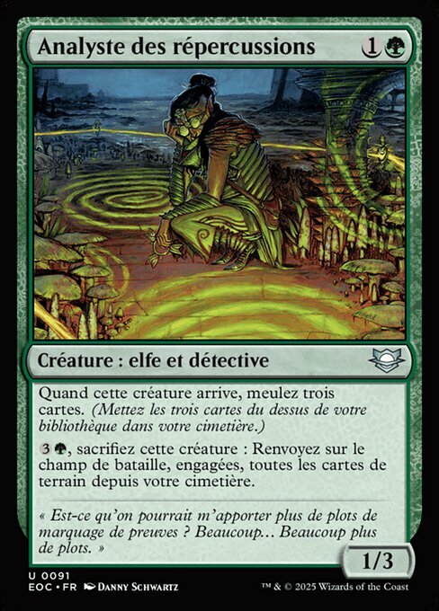 | Rules | When Aftermath Analyst enters the battlefield, mill three cards. , Sacrifice Aftermath Analyst: Return all land cards from your graveyard to the battlefield tapped. |