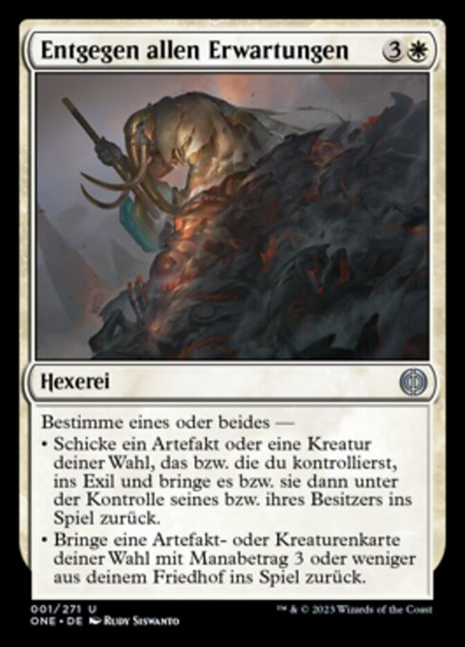 | Rules | Choose one or both — • Exile target artifact or creature you control, then return it to the battlefield under its owner's control. • Return target artifact or creature card with mana value 3 or less from your graveyard to the battlefield. |