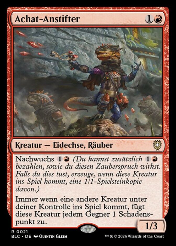 | Rules | Offspring (You may pay an additional as you cast this spell. If you do, when this creature enters, create a 1/1 token copy of it.) Whenever another creature you control enters, this creature deals 1 damage to each opponent. |