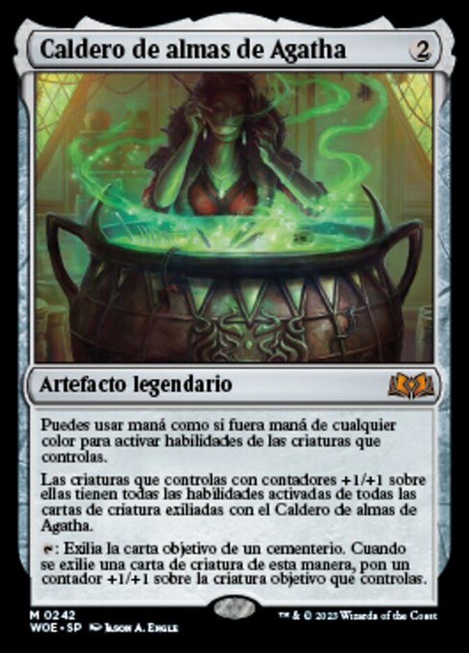 | Rules | You may spend mana as though it were mana of any color to activate abilities of creatures you control. Creatures you control with +1/+1 counters on them have all activated abilities of all creature cards exiled with Agatha's Soul Cauldron. : Exile target card from a graveyard. When a creature card is exiled this way, put a +1/+1 counter on target creature you control. |