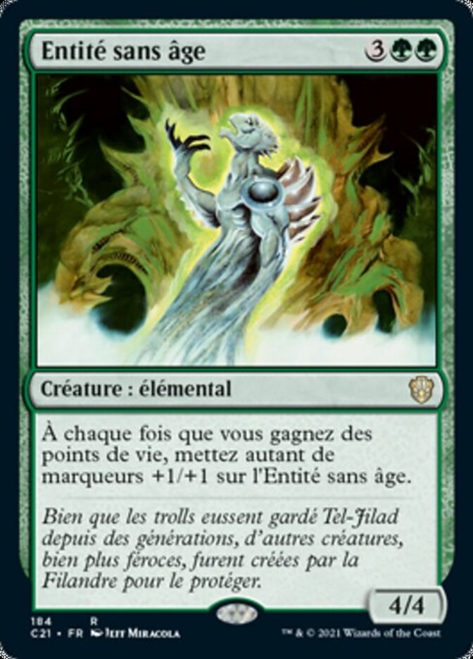 | Rules | Whenever you gain life, put that many +1/+1 counters on Ageless Entity. |