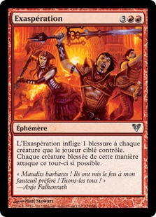 | Rules | Aggravate deals 1 damage to each creature target player controls. Each creature dealt damage this way attacks this turn if able. |