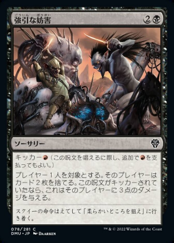 | Rules | Kicker (You may pay an additional as you cast this spell.) Target player discards two cards. If this spell was kicked, it deals 3 damage to that player. |