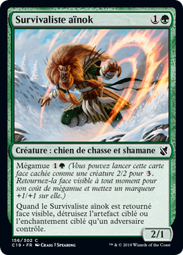 | Rules | Megamorph (You may cast this card face down as a 2/2 creature for . Turn it face up any time for its megamorph cost and put a +1/+1 counter on it.) When Ainok Survivalist is turned face up, destroy target artifact or enchantment an opponent controls. |