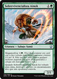 | Rules | Megamorph (You may cast this card face down as a 2/2 creature for . Turn it face up any time for its megamorph cost and put a +1/+1 counter on it.) When Ainok Survivalist is turned face up, destroy target artifact or enchantment an opponent controls. |