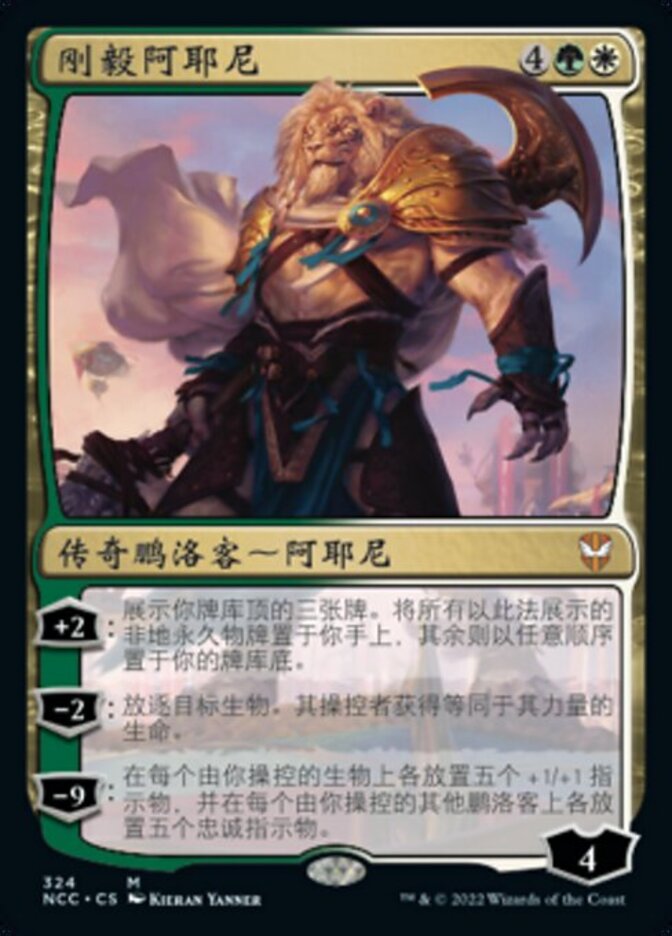 | Rules | +2: Reveal the top three cards of your library. Put all nonland permanent cards revealed this way into your hand and the rest on the bottom of your library in any order. −2: Exile target creature. Its controller gains life equal to its power. −9: Put five +1/+1 counters on each creature you control and five loyalty counters on each other planeswalker you control. |