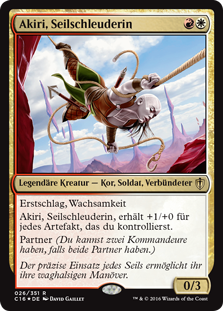 | Rules | First strike, vigilance Akiri, Line-Slinger gets +1/+0 for each artifact you control. Partner (You can have two commanders if both have partner.) |