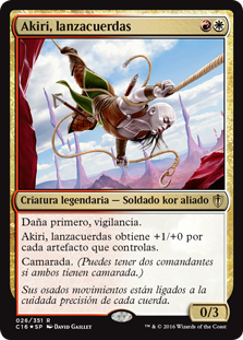 | Rules | First strike, vigilance Akiri, Line-Slinger gets +1/+0 for each artifact you control. Partner (You can have two commanders if both have partner.) |