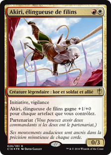| Rules | First strike, vigilance Akiri, Line-Slinger gets +1/+0 for each artifact you control. Partner (You can have two commanders if both have partner.) |