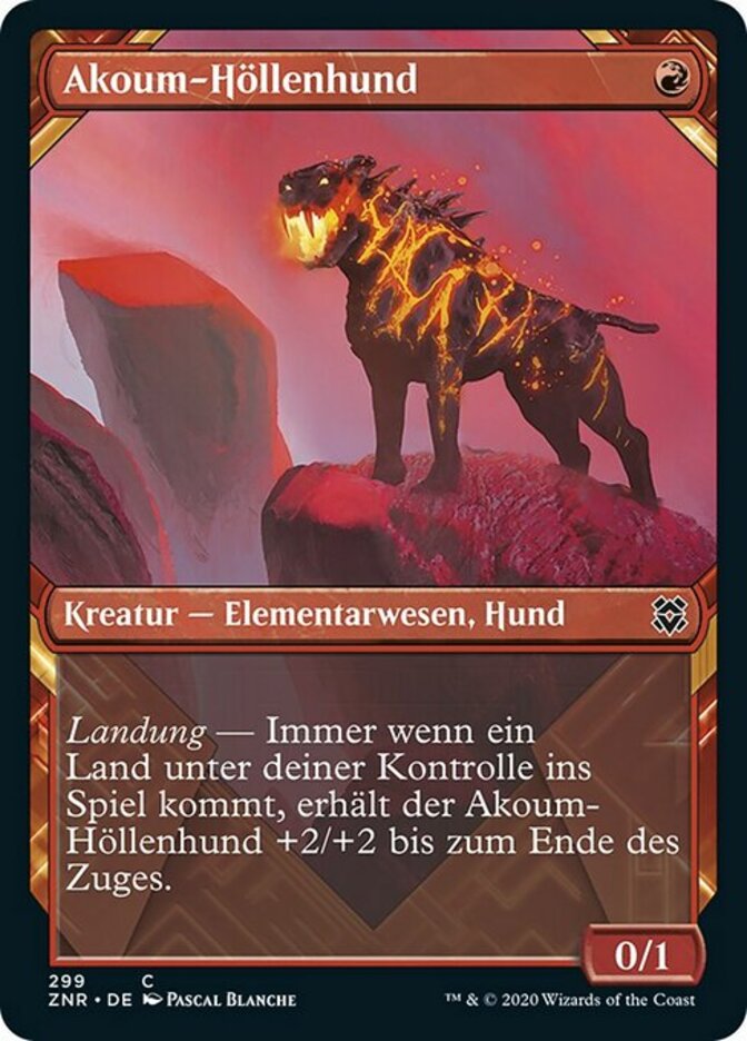 | Rules | Landfall — Whenever a land enters the battlefield under your control, Akoum Hellhound gets +2/+2 until end of turn. |