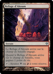 | Rules | Akoum Refuge enters the battlefield tapped. When Akoum Refuge enters the battlefield, you gain 1 life. : Add or . |