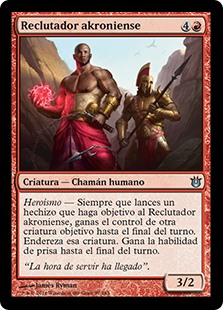 | Rules | Heroic — Whenever you cast a spell that targets Akroan Conscriptor, gain control of another target creature until end of turn. Untap that creature. It gains haste until end of turn. |