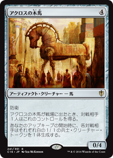 | Rules | Defender When Akroan Horse enters the battlefield, an opponent gains control of it. At the beginning of your upkeep, each opponent creates a 1/1 white Soldier creature token. |