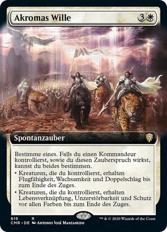 | Rules | Choose one. If you control a commander as you cast this spell, you may choose both. • Creatures you control gain flying, vigilance, and double strike until end of turn. • Creatures you control gain lifelink, indestructible, and protection from all colors until end of turn. |