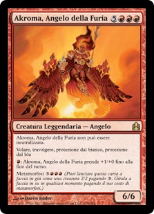 | Rules | This spell can't be countered. Flying, trample, protection from white and from blue : Akroma, Angel of Fury gets +1/+0 until end of turn. Morph (You may cast this card face down as a 2/2 creature for . Turn it face up any time for its morph cost.) |