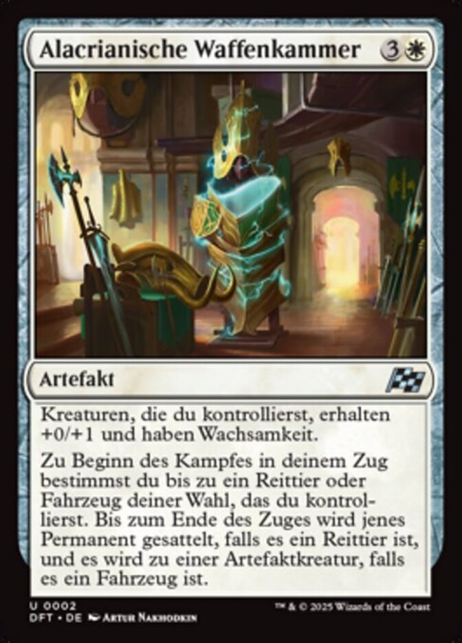| Rules | Creatures you control get +0/+1 and have vigilance. At the beginning of combat on your turn, choose up to one target Mount or Vehicle you control. Until end of turn, that permanent becomes saddled if it's a Mount and becomes an artifact creature if it's a Vehicle. |