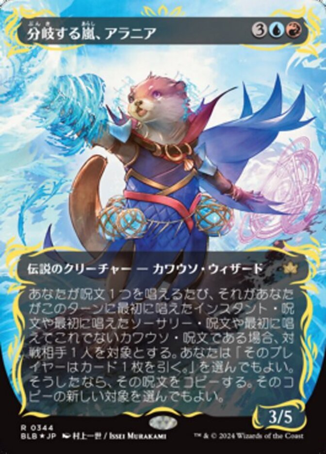 | Rules | Whenever you cast a spell, if it's the first instant spell, the first sorcery spell, or the first Otter spell other than Alania you've cast this turn, you may have target opponent draw a card. If you do, copy that spell. You may choose new targets for the copy. |