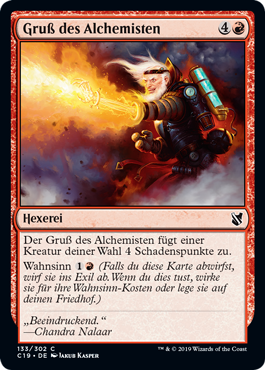 | Rules | Alchemist's Greeting deals 4 damage to target creature. Madness (If you discard this card, discard it into exile. When you do, cast it for its madness cost or put it into your graveyard.) |