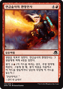 | Rules | Alchemist's Greeting deals 4 damage to target creature. Madness (If you discard this card, discard it into exile. When you do, cast it for its madness cost or put it into your graveyard.) |