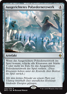 | Rules | When Aligned Hedron Network enters the battlefield, exile all creatures with power 5 or greater until Aligned Hedron Network leaves the battlefield. (Those creatures return under their owners' control.) |