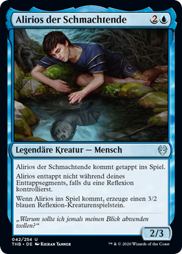 | Rules | Alirios, Enraptured enters the battlefield tapped. Alirios doesn't untap during your untap step if you control a Reflection. When Alirios enters the battlefield, create a 3/2 blue Reflection creature token. |