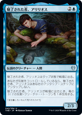 | Rules | Alirios, Enraptured enters the battlefield tapped. Alirios doesn't untap during your untap step if you control a Reflection. When Alirios enters the battlefield, create a 3/2 blue Reflection creature token. |