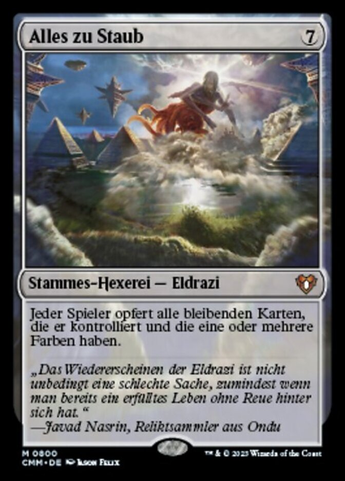 | Flavor | "The emergence of the Eldrazi isn't necessarily a bad thing, as long as you've already lived a fulfilling and complete life without regrets."-Javad Nasrin, Ondu relic hunter |