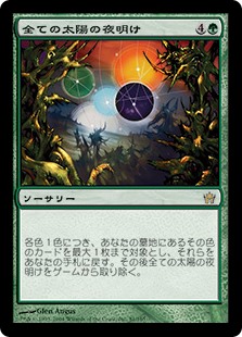 | Rules | For each color, return up to one target card of that color from your graveyard to your hand. Exile All Suns' Dawn. |