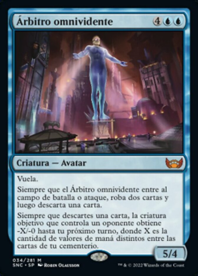 | Rules | Flying Whenever All-Seeing Arbiter enters the battlefield or attacks, draw two cards, then discard a card. Whenever you discard a card, target creature an opponent controls gets -X/-0 until your next turn, where X is the number of different mana values among cards in your graveyard. |