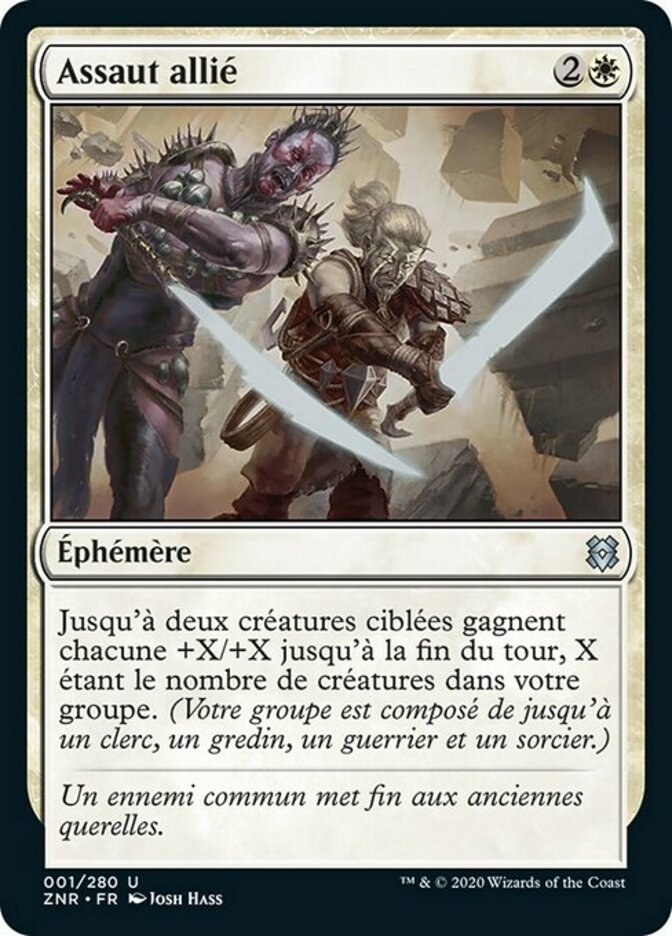 | Rules | Up to two target creatures each get +X/+X until end of turn, where X is the number of creatures in your party. (Your party consists of up to one each of Cleric, Rogue, Warrior, and Wizard.) |