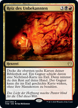 | Rules | Reveal the top six cards of your library. An opponent exiles a nonland card from among them, then you put the rest into your hand. That opponent may cast the exiled card without paying its mana cost. |