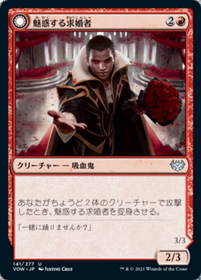 | Rules | When you attack with exactly two creatures, transform Alluring Suitor. // Trample When this creature transforms into Deadly Dancer, add . Until end of turn, you don't lose this mana as steps and phases end. : Deadly Dancer and another target creature each get +1/+0 until end of turn. |