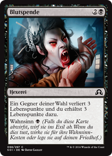 | Rules | Target opponent loses 3 life and you gain 3 life. Madness (If you discard this card, discard it into exile. When you do, cast it for its madness cost or put it into your graveyard.) |
