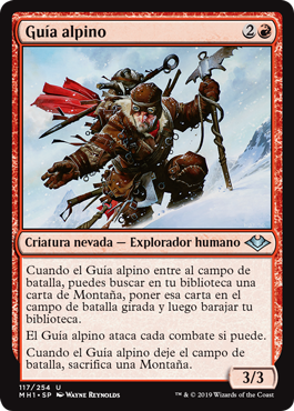 | Rules | When Alpine Guide enters the battlefield, you may search your library for a Mountain card, put that card onto the battlefield tapped, then shuffle. Alpine Guide attacks each combat if able. When Alpine Guide leaves the battlefield, sacrifice a Mountain. |