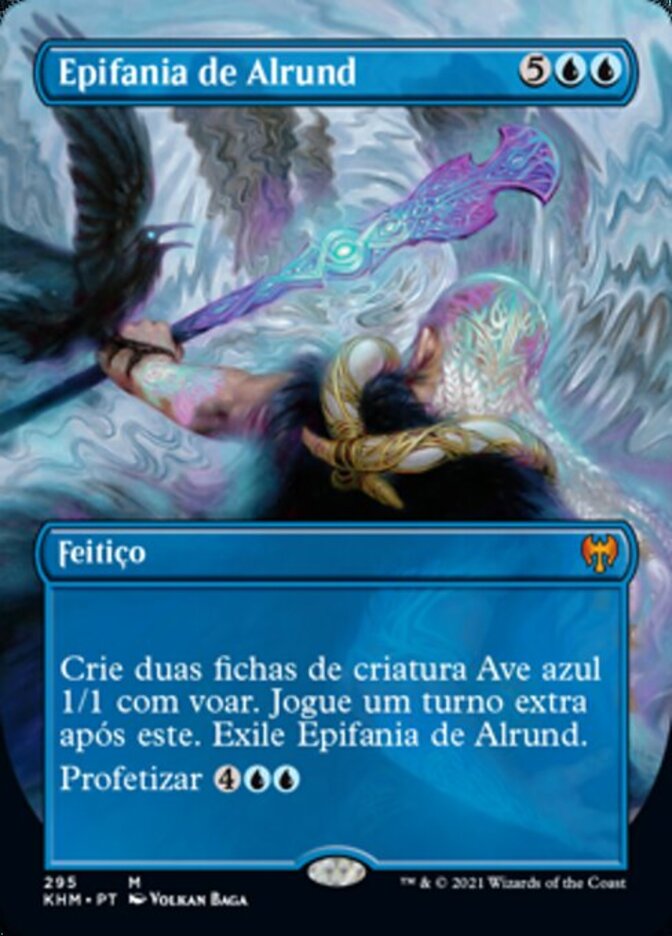 | Rules | Create two 1/1 blue Bird creature tokens with flying. Take an extra turn after this one. Exile Alrund's Epiphany. Foretell (During your turn, you may pay and exile this card from your hand face down. Cast it on a later turn for its foretell cost.) |