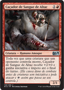 | Rules | Whenever a creature an opponent controls dies, Altac Bloodseeker gets +2/+0 and gains first strike and haste until end of turn. (It deals combat damage before creatures without first strike, and it can attack and as soon as it comes under your control.) |