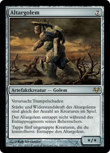 | Rules | Trample Altar Golem's power and toughness are each equal to the number of creatures on the battlefield. Altar Golem doesn't untap during your untap step. Tap five untapped creatures you control: Untap Altar Golem. |