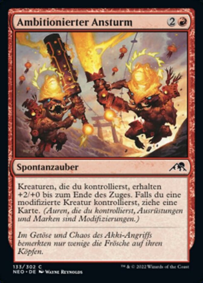 | Rules | Creatures you control get +2/+0 until end of turn. If you control a modified creature, draw a card. (Equipment, Auras you control, and counters are modifications.) |