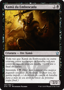 | Rules | Whenever Ambuscade Shaman or another creature enters the battlefield under your control, that creature gets +2/+2 until end of turn. Dash (You may cast this spell for its dash cost. If you do, it gains haste, and it's returned from the battlefield to its owner's hand at the beginning of the next end step.) |
