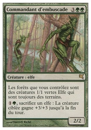 | Rules | Forests you control are 1/1 green Elf creatures that are still lands. , Sacrifice an Elf: Target creature gets +3/+3 until end of turn. |