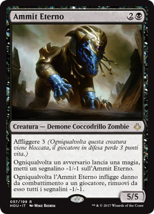 | Rules | Afflict 3 (Whenever this creature becomes blocked, defending player loses 3 life.) Whenever an opponent casts a spell, put a -1/-1 counter on Ammit Eternal. Whenever Ammit Eternal deals combat damage to a player, remove all -1/-1 counters from it. |