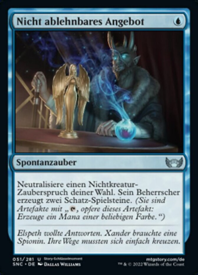 | Rules | Counter target noncreature spell. Its controller creates two Treasure tokens. (They're artifacts with ", Sacrifice this artifact: Add one mana of any color.") |