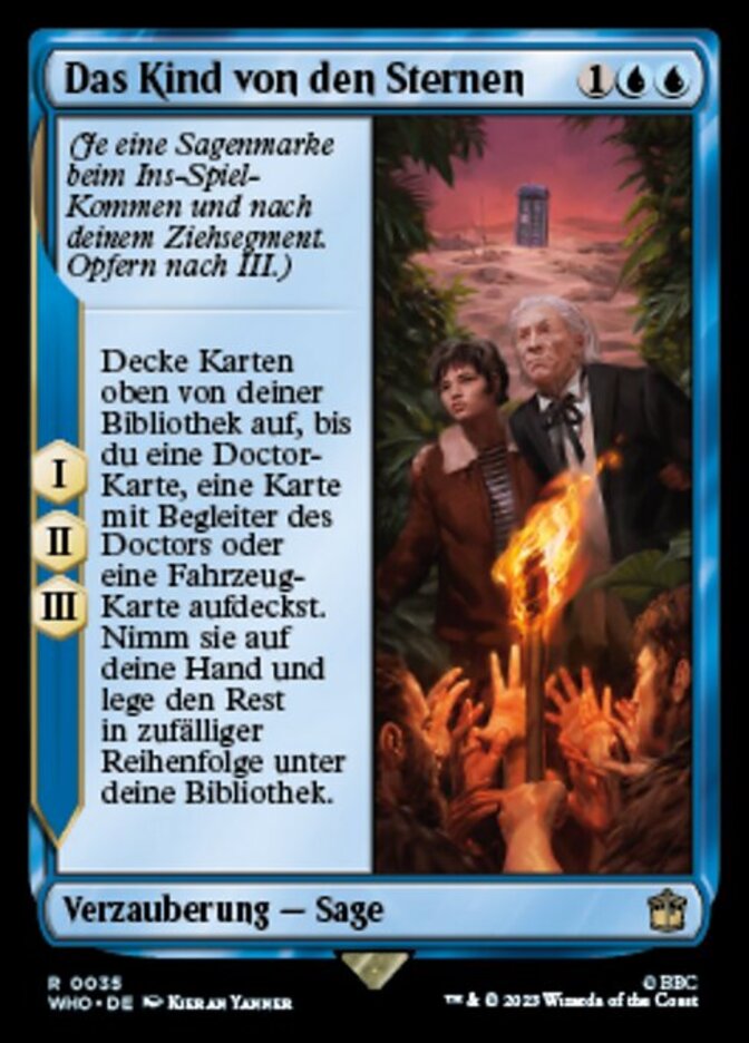 | Rules | (As this Saga enters and after your draw step, add a lore counter. Sacrifice after III.) I, II, III — Reveal cards from the top of your library until you reveal a Doctor card, a card with doctor's companion, or a Vehicle card. Put that card into your hand and the rest on the bottom of your library in a random order. |