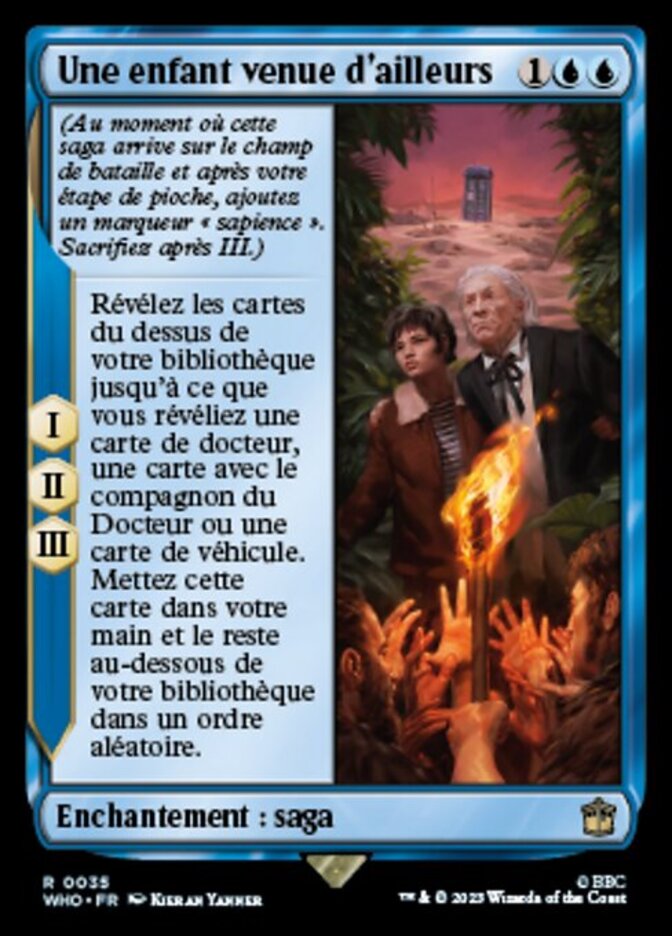 | Rules | (As this Saga enters and after your draw step, add a lore counter. Sacrifice after III.) I, II, III — Reveal cards from the top of your library until you reveal a Doctor card, a card with doctor's companion, or a Vehicle card. Put that card into your hand and the rest on the bottom of your library in a random order. |