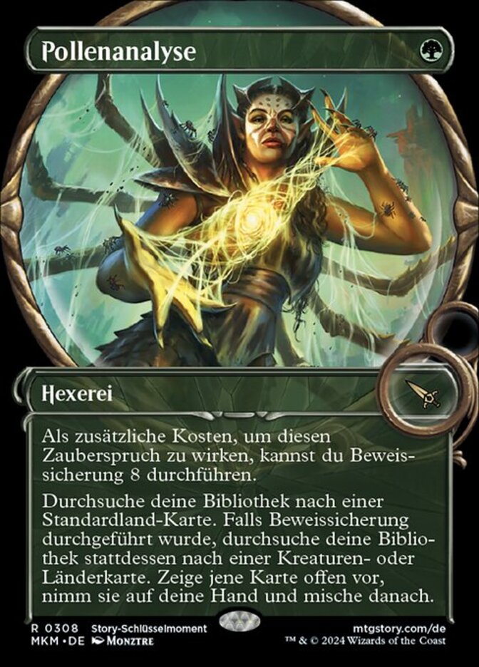 | Rules | As an additional cost to cast this spell, you may collect evidence 8. (Exile cards with total mana value 8 or greater from your graveyard.) Search your library for a basic land card. If evidence was collected, instead search your library for a creature or land card. Reveal that card, put it into your hand, then shuffle. |