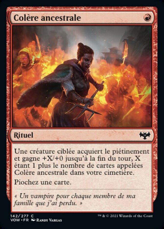 | Rules | Target creature gains trample and gets +X/+0 until end of turn, where X is 1 plus the number of cards named Ancestral Anger in your graveyard. Draw a card. |